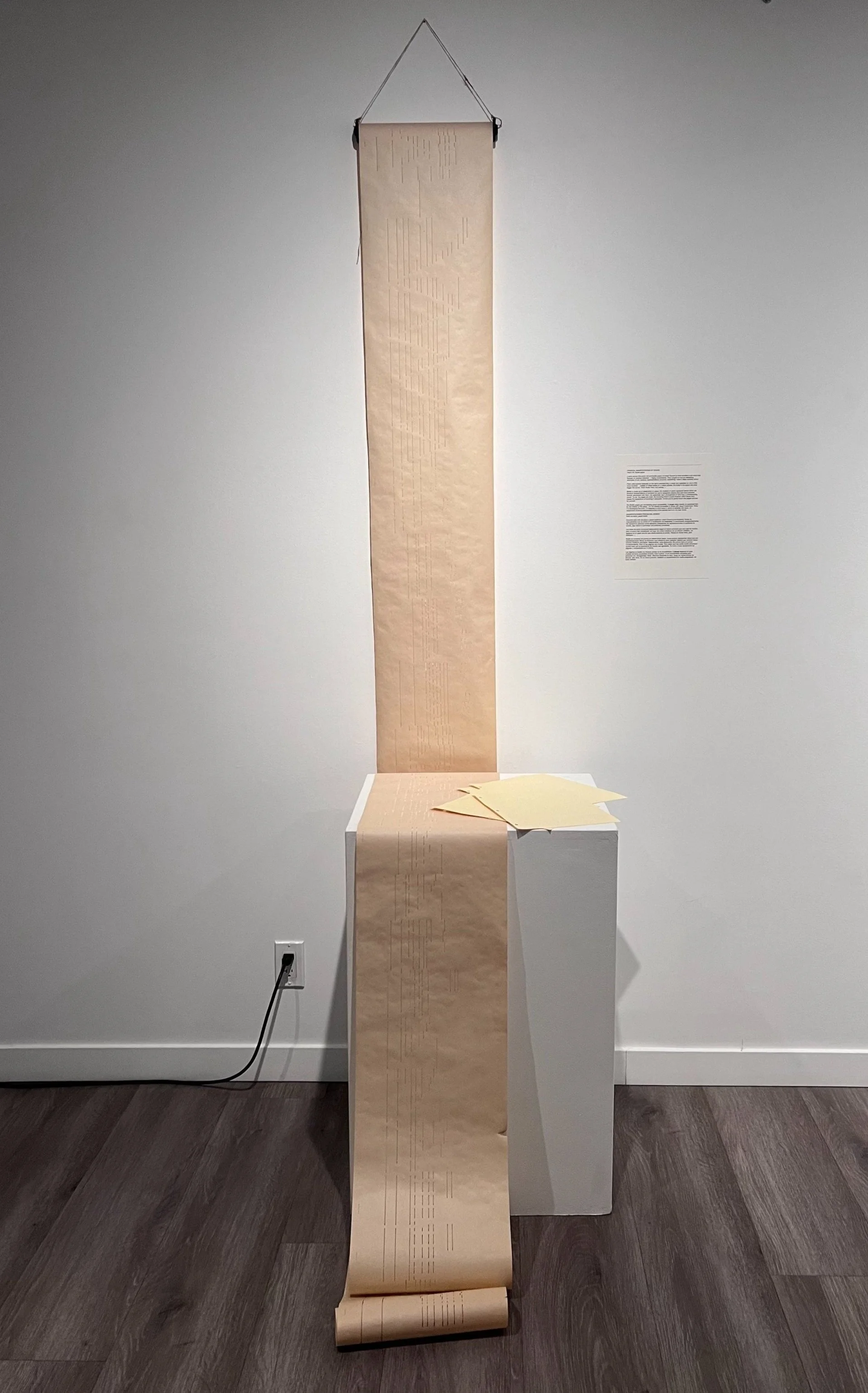I came across this piano roll and braille paper at Urban Source (a most excellent craft store that focuses on reusing materials - I highly recommend). They caught my eye as interesting examples of non-auditory representations of sound, something I have a deep curiosity about.